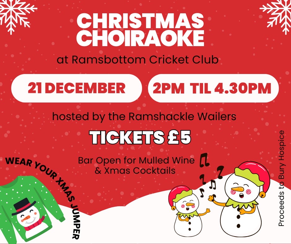 Come and learn the harmonies to a couple of festive bangers with your hosts The RAMshackle Wailers.  Christmas pop songs for all the family.  What’s not to love!  Wear some sparkle or your Christmas elf ears…buy a mulled wine and get a complimentary mince pie so you can sing with mouths full and happy hearts.  In aid of Bury Hospice!