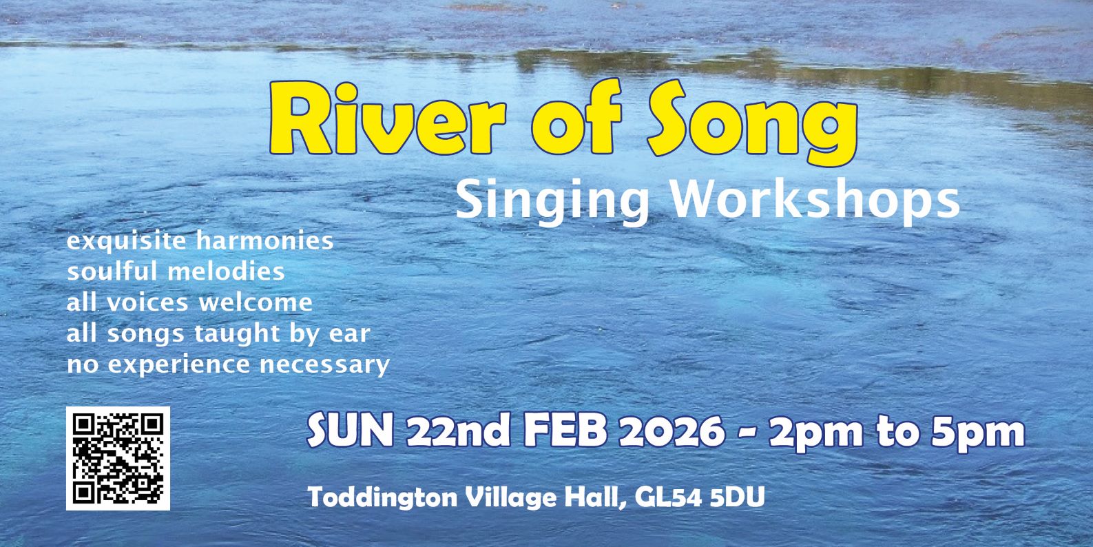Join us for a joyful afternoon of exquisite harmonies, soulful melodies, laughter and improvisation. Come and blend your voices together in a river of sound. Singing fabulous songs from around the world, you will find yourself immersed in vibrant 4-part harmonies – whether you are a first time or all-time singer!