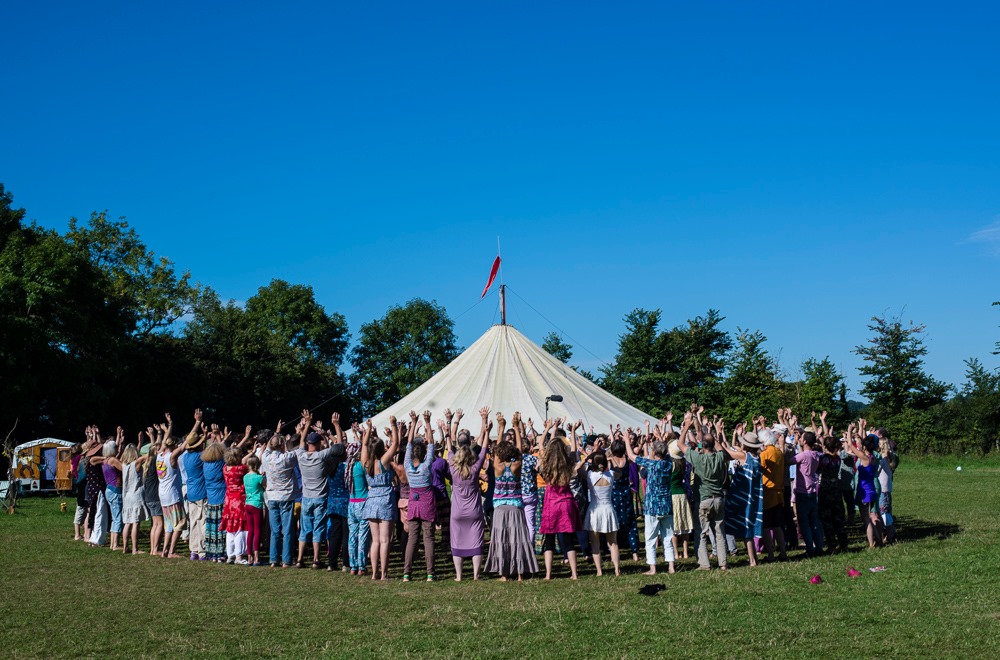 Our camps are held in wildflower meadows near Bradford on Avon. They are vibrant, fun and peaceful events where children, teenagers and adults can find friendship, creativity, personal growth and community. We camp in circles around campfires in a quiet acoustic environment. At the hub of the camp is a village green with a cafe, information tent and a children’s play and creativity area. There are hot showers and compost toilets.