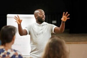 Bruce specialises in teaching traditional songs from his native country of Zimbabwe in 3 to 6 part harmonies. His teaching is in the traditional, oral/aural way; reminiscent of long ago when people people would gather around a fire in the evenings, at weddings & funerals or whilst working in the fields and start weaving harmonies. His approach is inclusive & participatory, designed to build people’s confidence in singing. The songs he teaches are emotionally charged & uplifting, carrying messages of struggle, hope, determination, courage, inspiration & togetherness. One does not need to be experienced in singing to take part in his workshops.