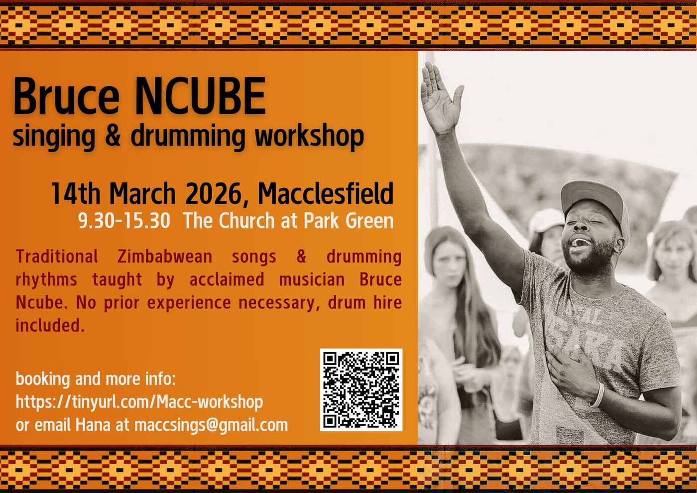 9.30am-12pm drumming AND 1pm-3.30pm singing workshop